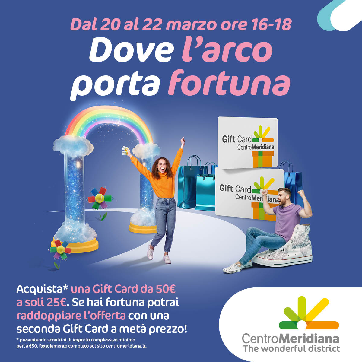 Al Centro Commerciale Meridiana arriva l’Arco della Fortuna: attraversalo e scopri quanta fortuna ti aspetta! ✨