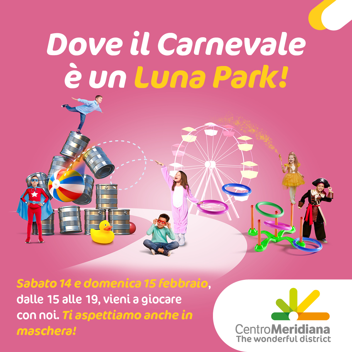 Il Carnevale arriva al Centro Commerciale Meridiana con un coinvolgente Luna Park di Carnevale, pensato per regalare momenti di allegria a tutta la famiglia.